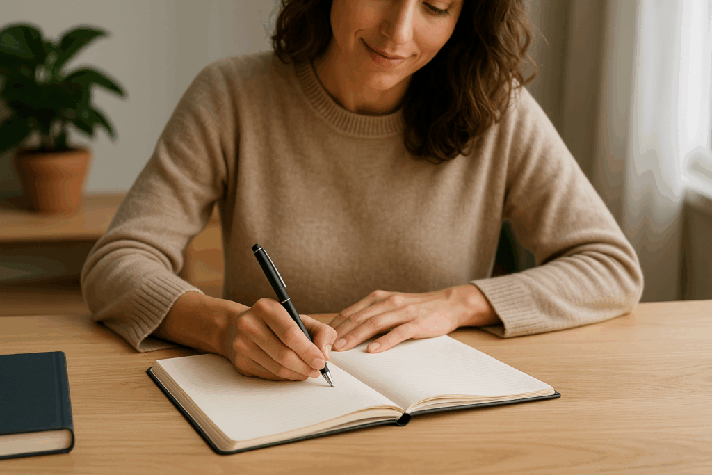 Reserve 5 a 10 minutos para escrever tudo o que estiver na sua cabeça. Isso reduz o ruído mental e libera espaço criativo.